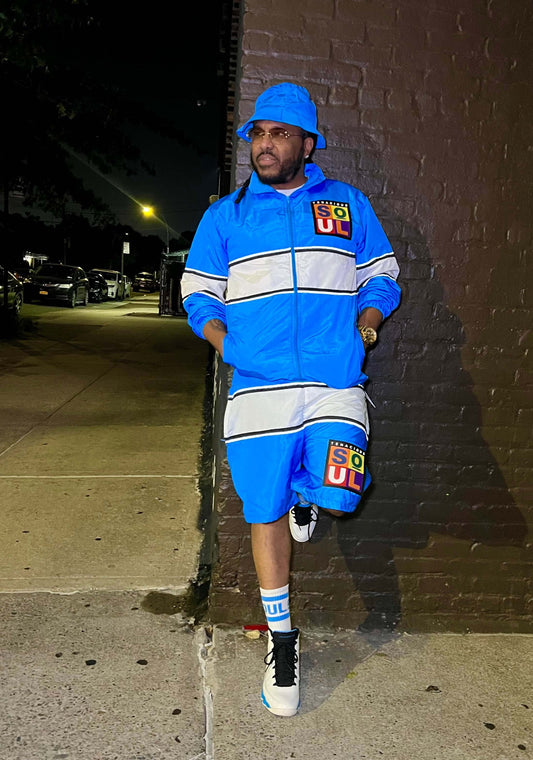 MENS DEEP CAROLINA BLUE 5 PIECE WINDBREAKER SHORT SET