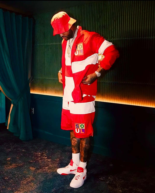 MENS RED 5 PIECE WINDBREAKER SHORT SET