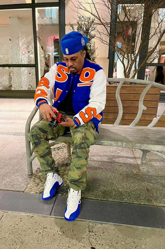 NY KNICKS INSPIRED WOOL/LEATHER VARSITY JACKET